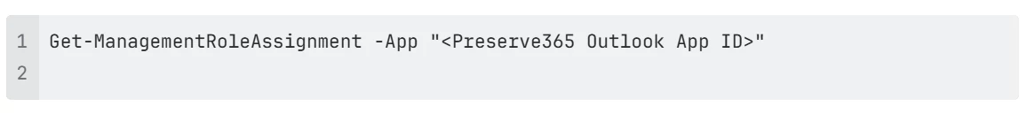 Locate the App (Client) ID of the Preserve365 Outlook connector in your Microsoft Entra (Azure AD) tenant: