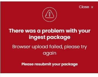 I received the following error message “There was a problem with your ingest package. Browser upload failed, please try again.” A screenshot is attached.